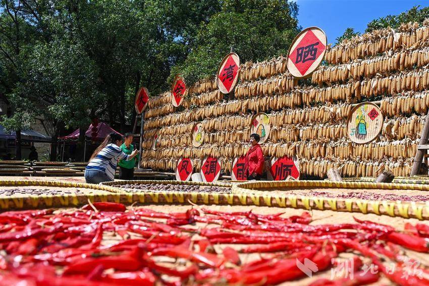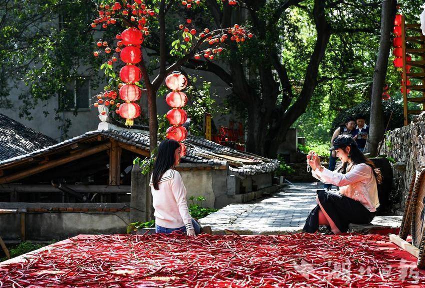 9月20日,秋日的武汉市黄陂区木兰乡大余湾村,宛如被打翻的调色盘,辣椒红、玉米黄、南瓜橙……在青瓦飞檐间铺展成壮观的秋日丰收图卷。让人流连忘返,纷纷驻足欣赏打卡。近年来,大余湾村本着“修旧如旧、传承创新”原则,充分利用“中国历史文化名村”品牌及乡村生态资源优势,积极打造集农业休闲、生态游憩、乡村文化于一体的精品乡村生态旅游产业,激发乡村旅游消费新活力。(视界网 王江 摄)